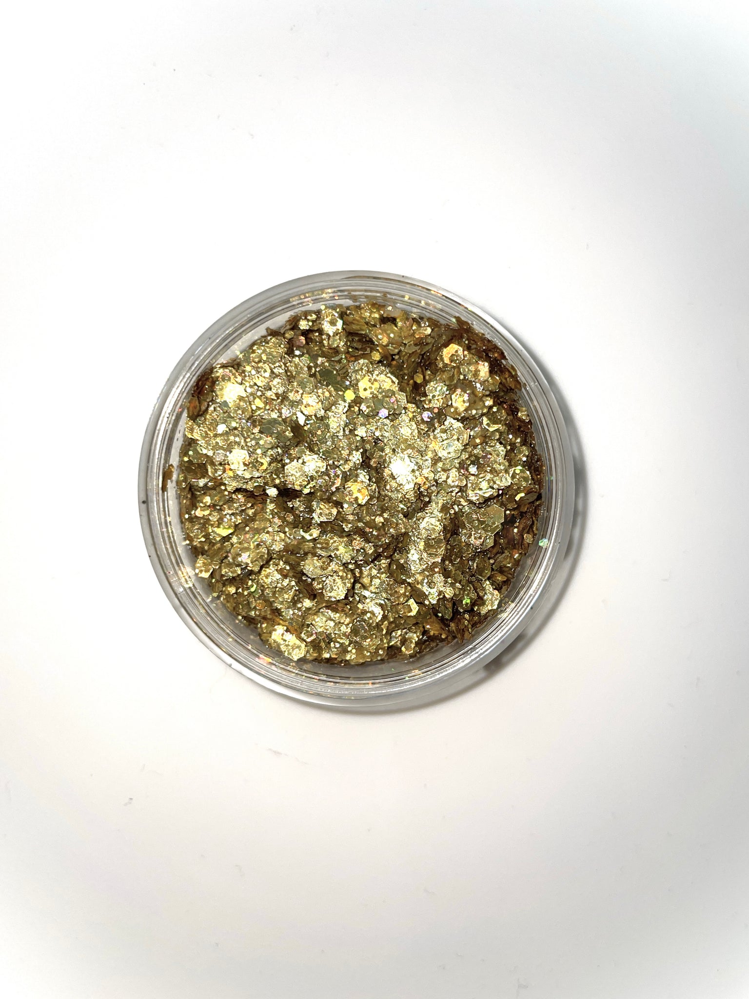 A true gold coloured glitter mix with added iridescent glitters for extra shimmer.