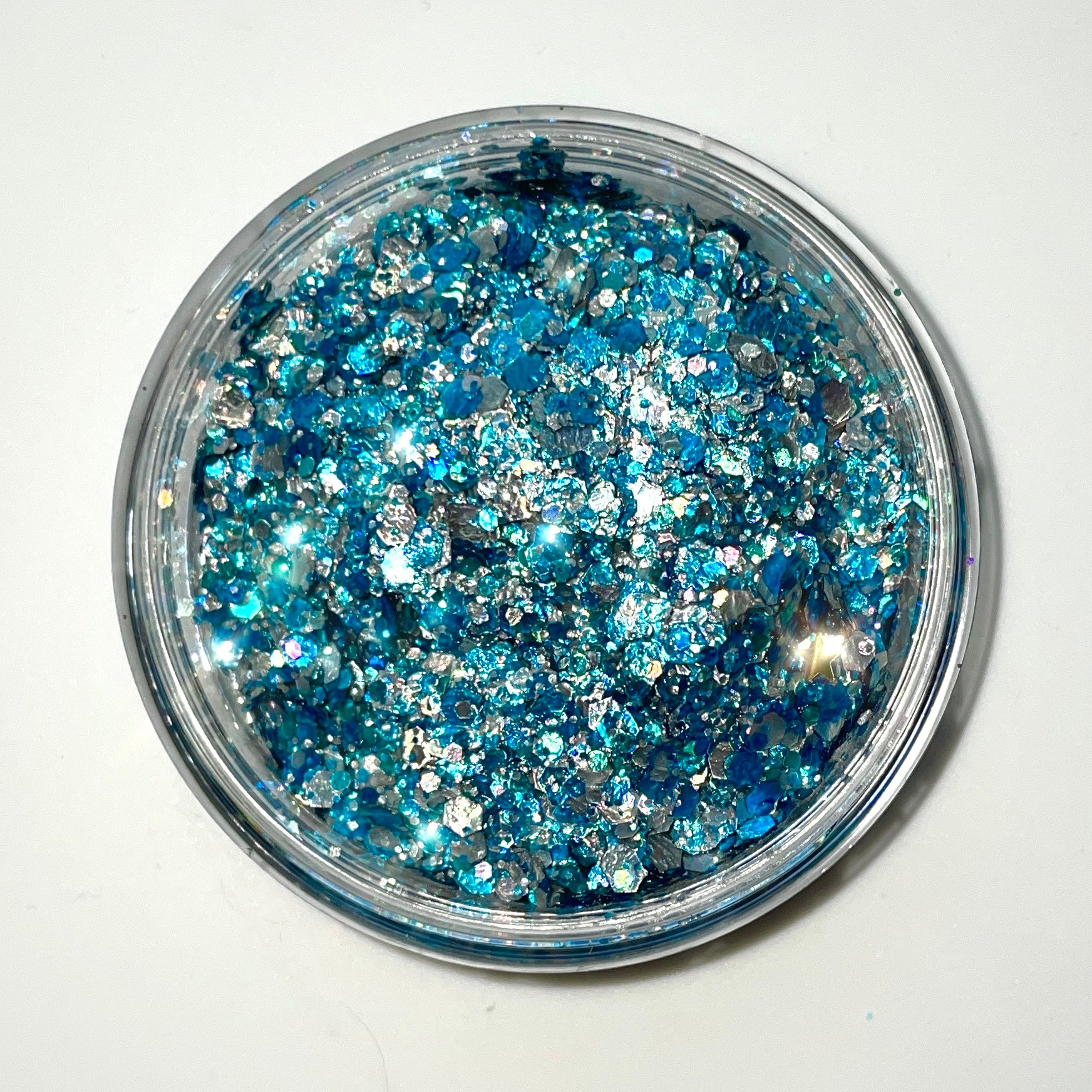 A mix of silver, blue and teal glitters with added iridescent glitters for maximum sparkle