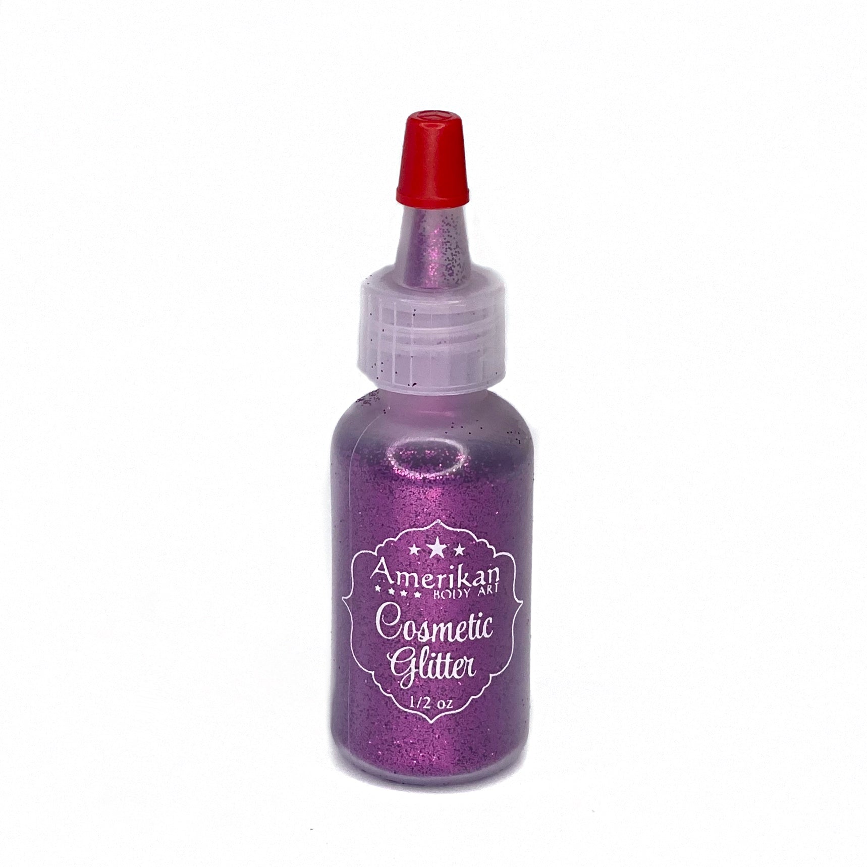 Amerikan Body Art Cosmetic Grade Glitters come in a 1/2 oz puffer bottle- pull off the red tip and puff the glitter at your face painting design- glitter will stick to wet face paints. Can also be applied with a brush or finger.