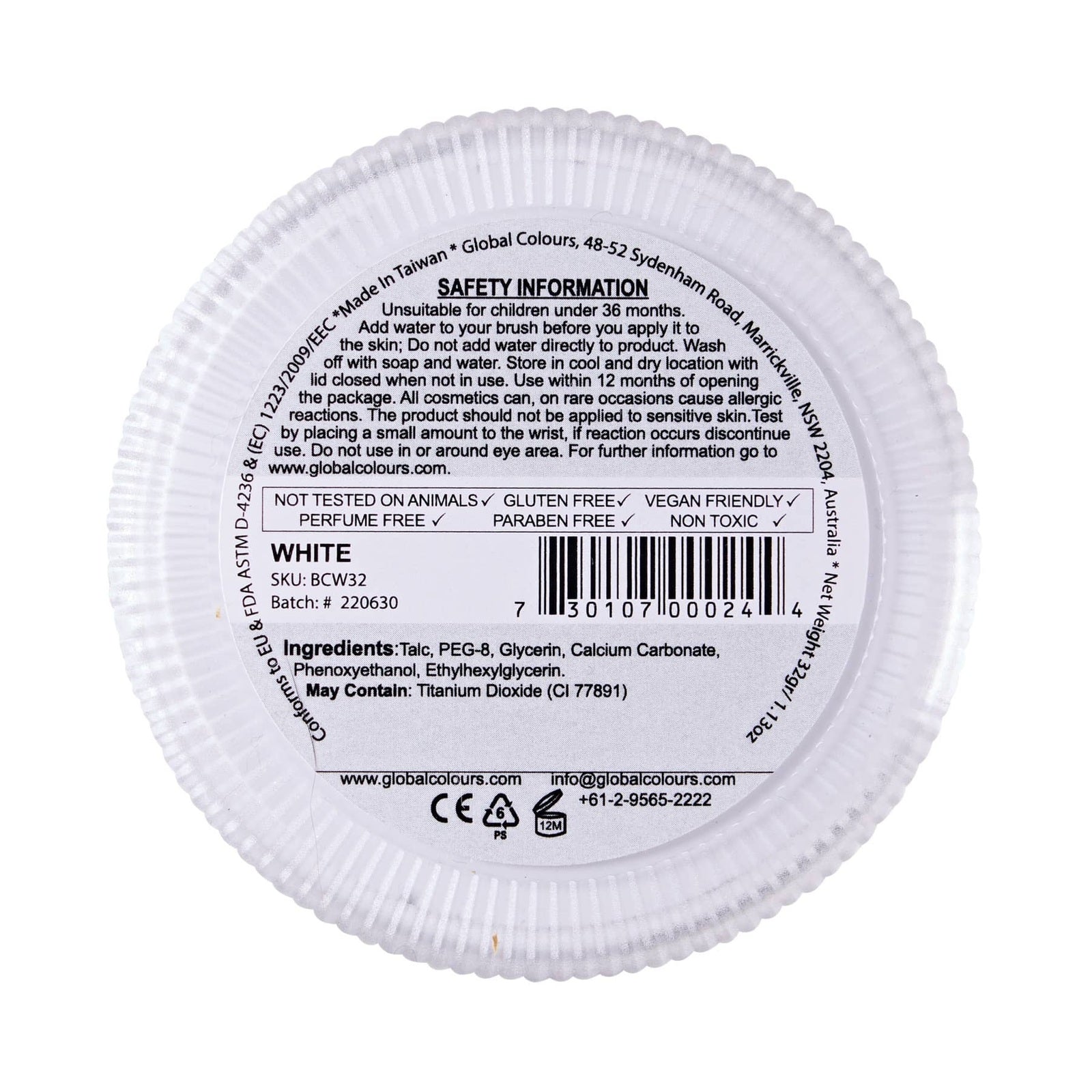 Directions for use: Activate the face paint with sealer or water to a creamy consistency and apply to the skin. The paint will keep that creamy consistency for a few minutes before drying down, allowing the artists to manipulate the placement on the skin with a sponge, dry brush or smudger tool. This formula can also be used dry, with a dry crush to create a smokey, transparent effect. For best large surface area, streak-free results use in a buffing motion with our Global Colours Small or Large Kabuki Brush.