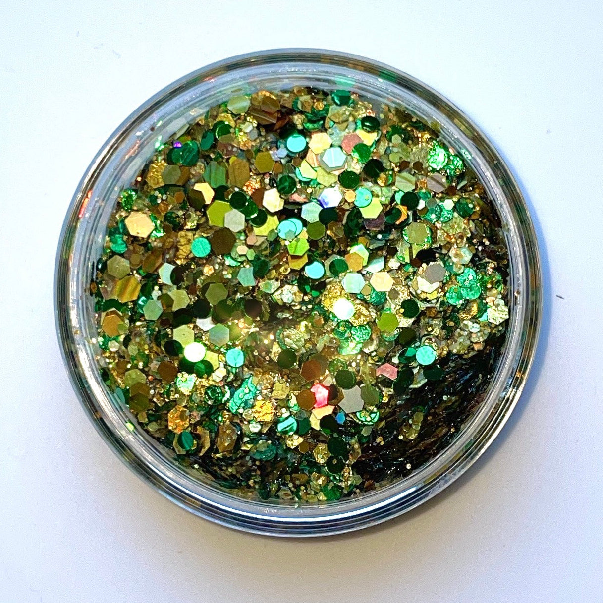 A gorgeous blend of green and gold sparkling iridescent glitters make this one perfect for your Australia themed designs