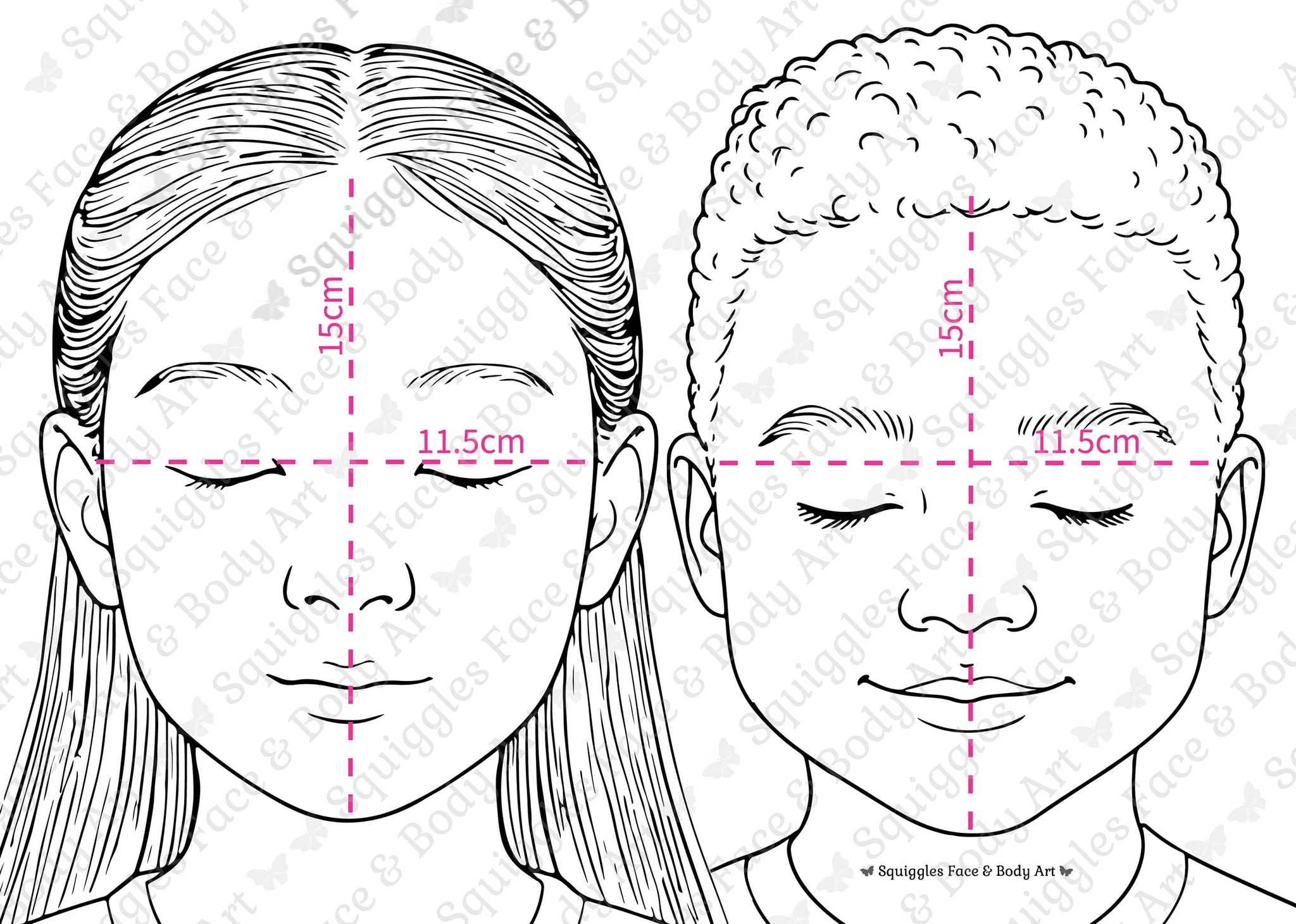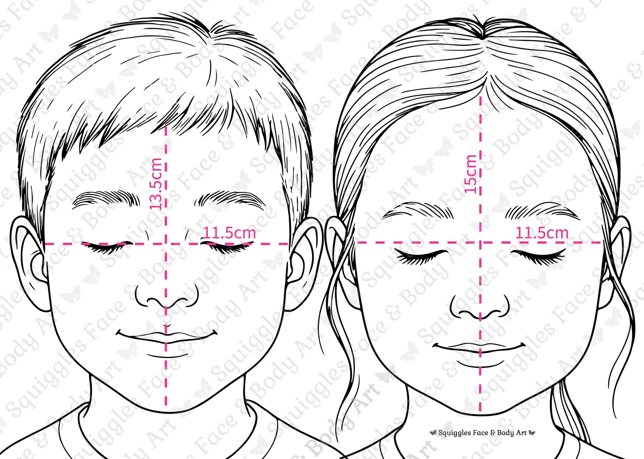 Each face template is carefully scaled for accuracy. The paintable face area measures 11.5cm wide and 13.5–15cm from chin to hairline, the average size of a child’s face between 4–6 years old. This gives you a realistic canvas that closely reflects your most frequent clients, helping you practice designs that will transfer flawlessly to real children at parties and events.