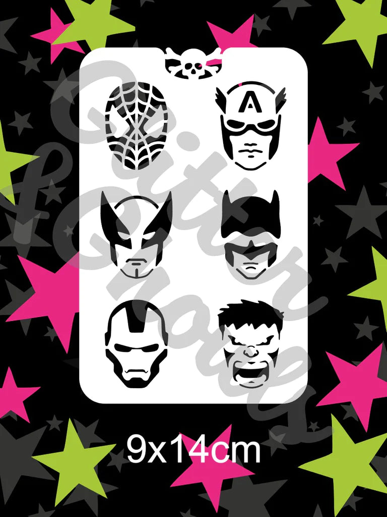 Glitter and Ghouls Face Painting Stencil 017- Super Guy
