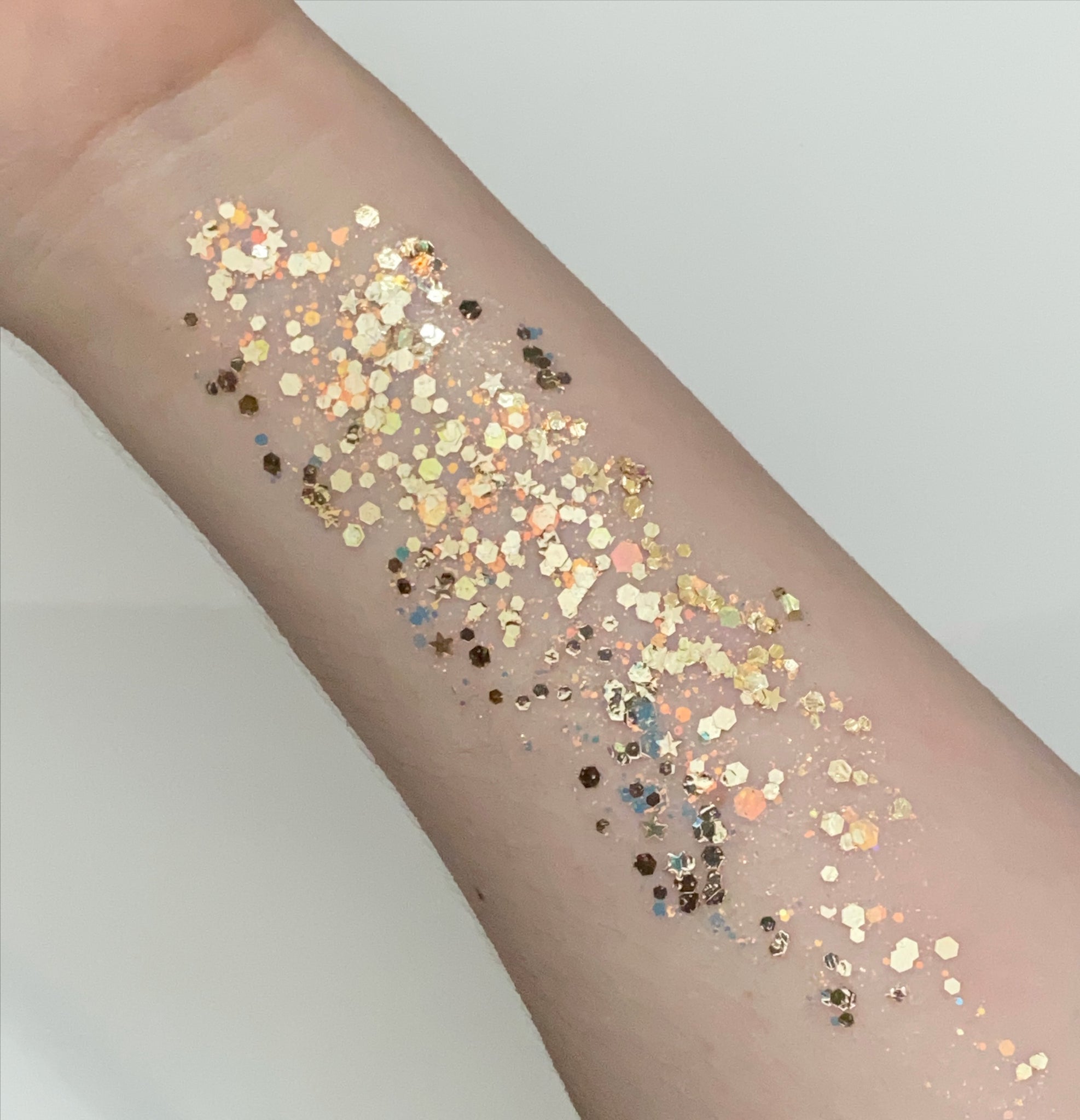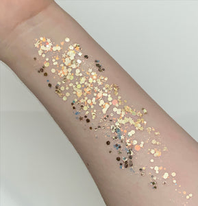 Pixie Paint is a blend of chunky and fine glitters along with a aloe glitter gel base. You can paint it on the face, body, and hair. It's perfect for Glitter Roots, cute Pixie-ish accents on the cheeks, and extreme coverage for dance clubs or festival body painting. Pixie Paint tends to stay put all day, with very little fallout, but can be easily washed off with water.